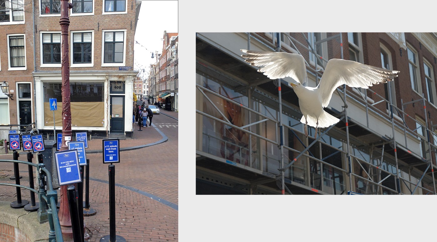 Er ontstaan wachtrijen op de brug, de buurt begint er last van te krijgen en de Gemeente kan er weinig aan veranderen. Er is een straatcoach ingezet om de toeristen in het gareel te houden en op de brug staan speciaal ontworpen bordjes die de wachttijden aangeven (“±15 minute wait from here”), een QR code waarmee je kunt scannen “for menu and recommendations” en het verzoek: “Please do not feed the birds”.