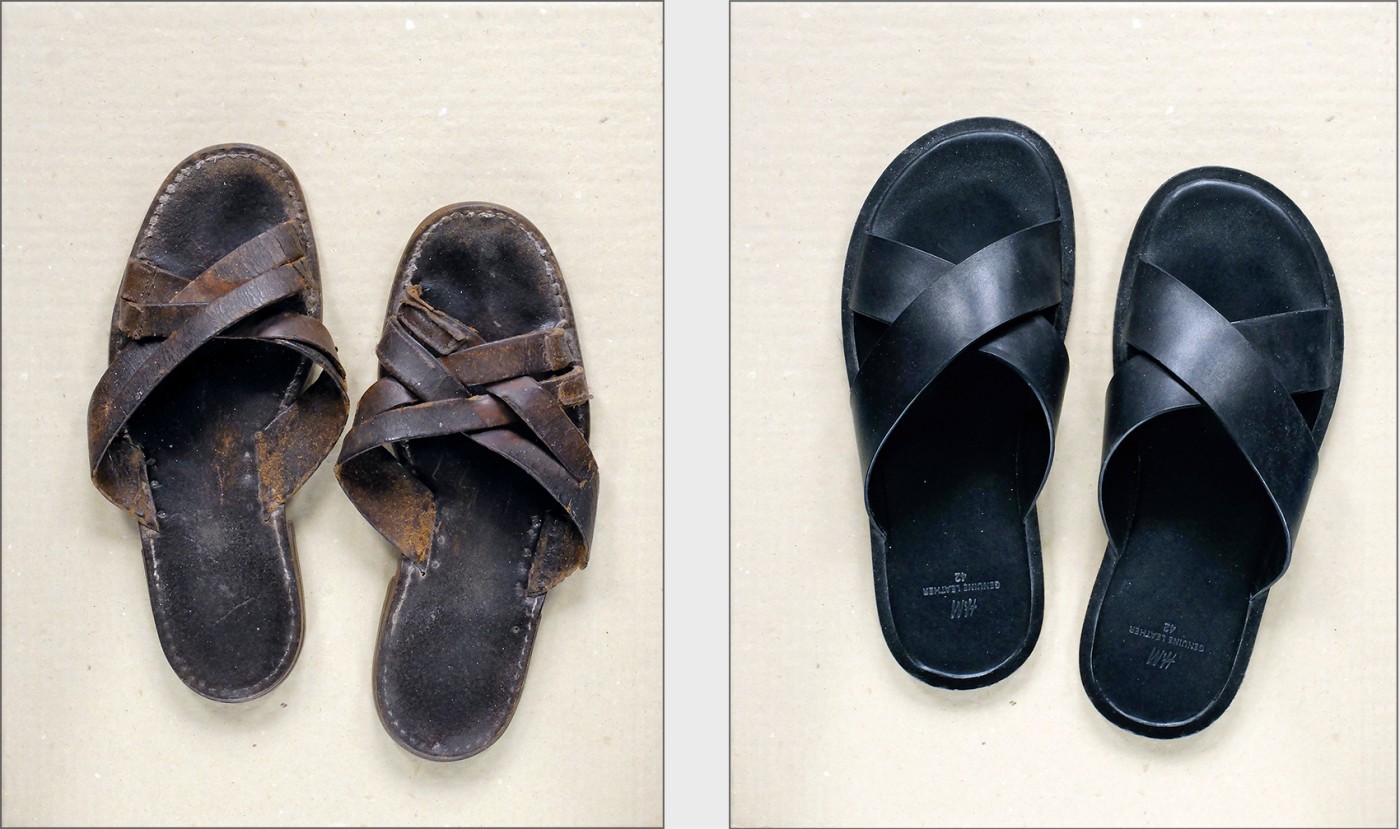 Ik weet niet meer wanneer ik ze ooit gekocht heb. Wel waar: ‘Zwartjes’ in de Utrechtsestraat. Voor m’n gevoel rond 1965. Ik heb er de halve wereld mee rondgereisd. Makkelijk om in te pakken. Sommige reizigers zetten een foto van hun dierbaren op het nachtkastje als ze hun koffers uitpakken. Ik had genoeg aan m’n slippers onder het bed.