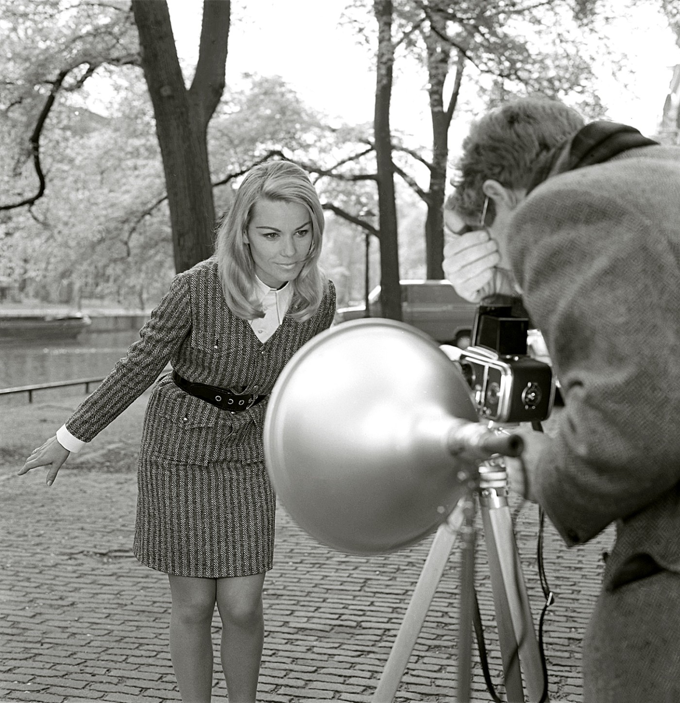 Een rol achtergrondpapier en een lampenset in een studioachtige ruimte, begin zeventiger jaren. Om ongewenst afrollen te voorkomen zijn er twee prullenmanden op de rol gezet. Modellen die nauwelijks regieaanwijzingen lijken te krijgen. Toch komen ze niet gekunsteld over. De fotograaf moet iets bemoedigends hebben uitgestraald.