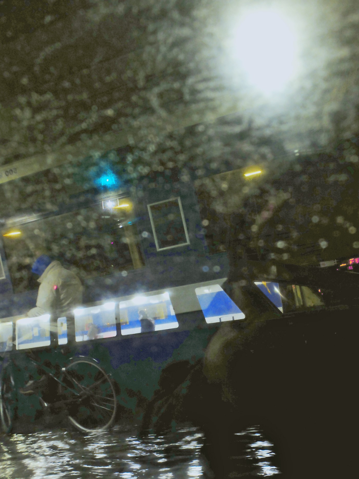 Ik zit in de trein. We rijden ergens tussen Haarlem en Heemstede. Het is herfst; regen en wind hebben hun sporen achtergelaten op de ramen.