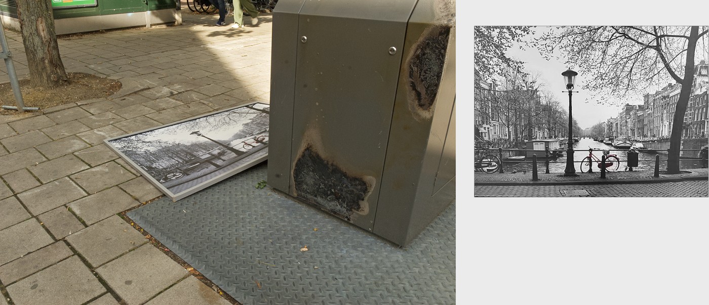 Een zucht van verlichting toen ik langs deze vuilcontainer in de Honthorststraat reed. Hier lag het bewijs dat perfecte plaatjes gauw vervelen. Hoewel daar veel toeristen langslopen had niemand de aandrang gevoeld om deze, meest succesvolle, reproductie van Ikea mee te nemen.